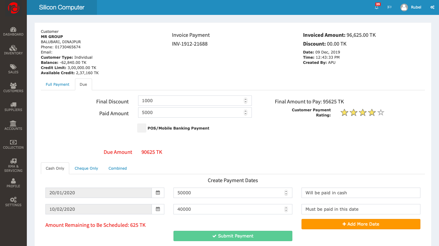 Final Output Of the Payment System of RetaDesk