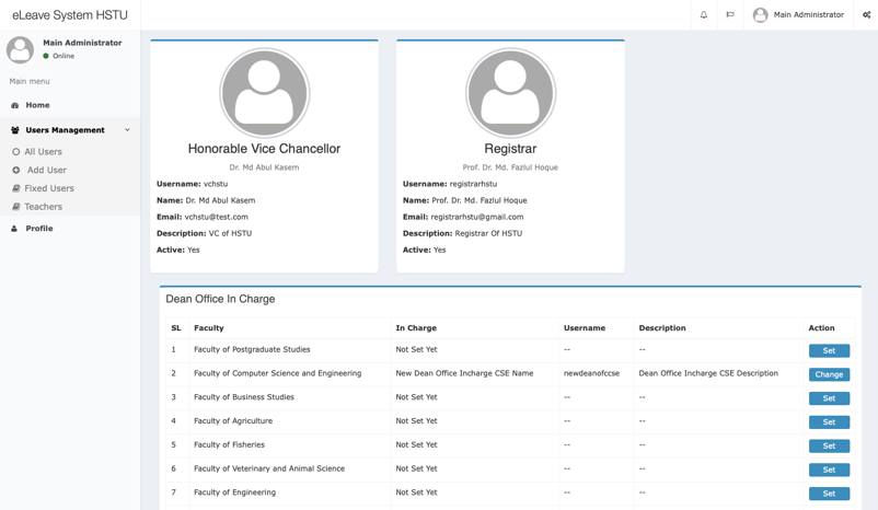 There are nine types of administrative users involved in the leave management system of HSTU. They are: