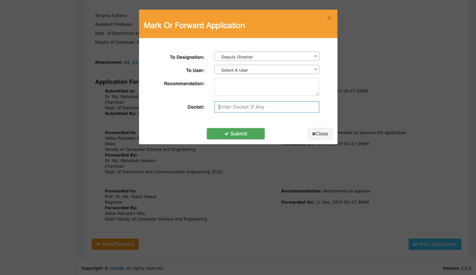After generating the office order the Computer Operator will submit the office order and it will automatically be forwarded to the Deputy Director. The deputy director will assign a memorandum to the application and submit it to the Registrar for finalization. Finally the registrar will confirm application and thus the whole process will be completed.
