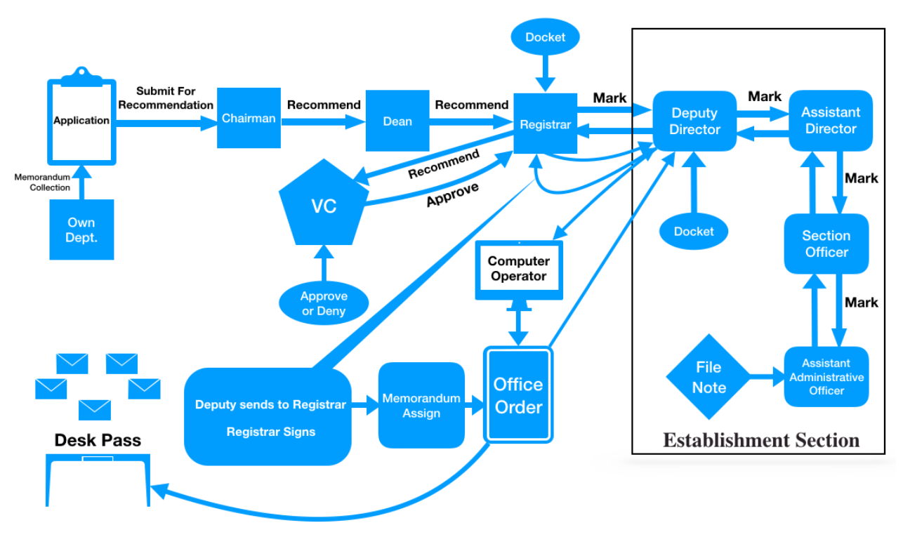 If the application is approved by the VC then it will be forwarded back to the Registrar. Then the registrar will mark the application to a deputy director for processing an office order.